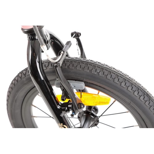 - Brakes: Aluminium V-brake brake pads with braking power suitable for a child's bike and brake handles adapted to a child's hand. An additional feature is the use of orange cable armour for the rear brake. This makes it very easy to explain to your child which brake to use, e.g. for an emergency stop.